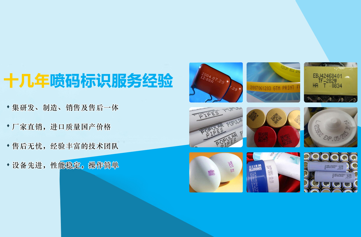 歡迎光臨我們的網(wǎng)站!我司是專業(yè)噴碼標識服務商,產(chǎn)品有小字符噴碼機、二維碼條碼噴碼機、手持噴碼機、激光噴碼機等并提供噴碼機加工,免費打樣和試機